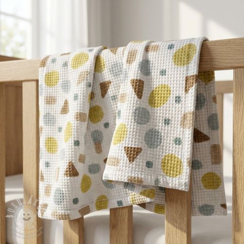 Bavlna s vaflovou vazbou Shapes yellow digital print