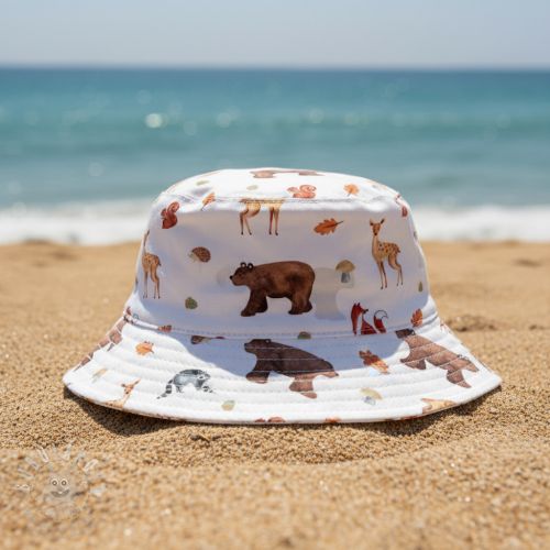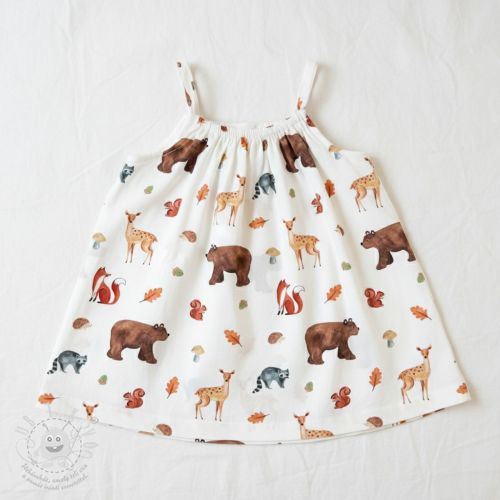 Bavlněná látka Animals in the wood white digital print