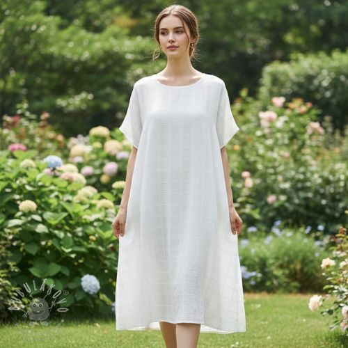 Bavlněná látka EMBROIDERY DOBBY Square white