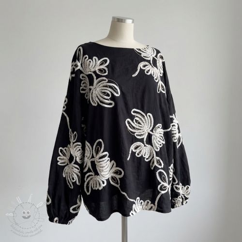Bavlněná látka EMBROIDERY Loom En Light black