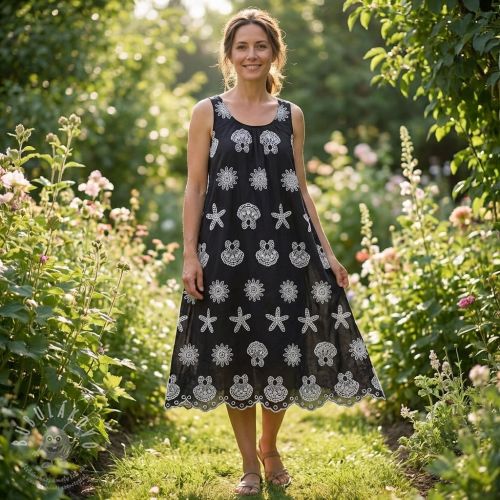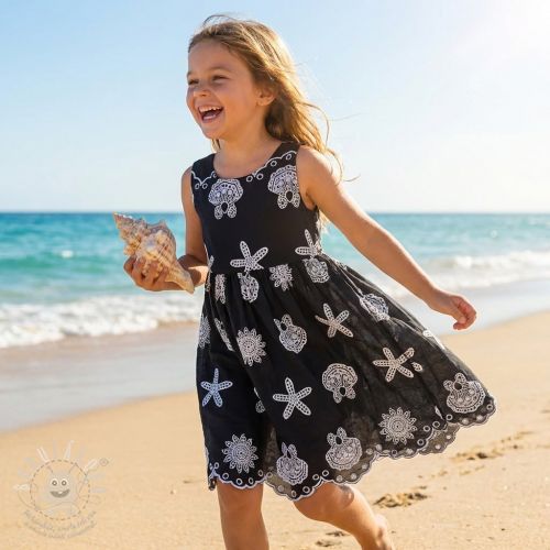 Bavlněná látka EMBROIDERY Sea ornaments black