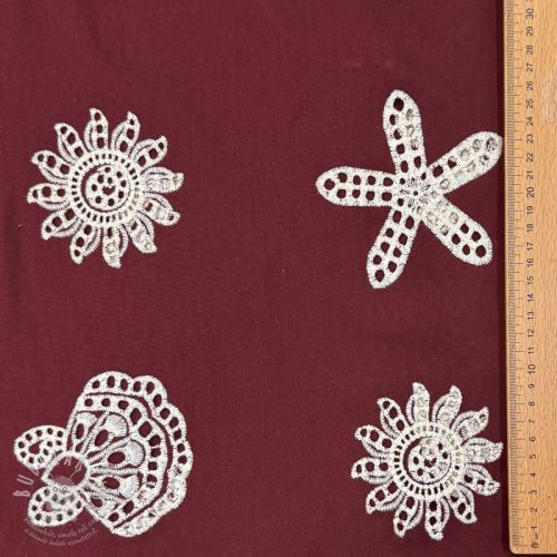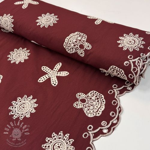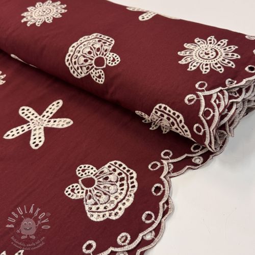 Bavlněná látka EMBROIDERY Sea ornaments bordeaux