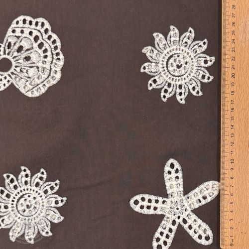 Bavlněná látka EMBROIDERY Sea ornaments brown