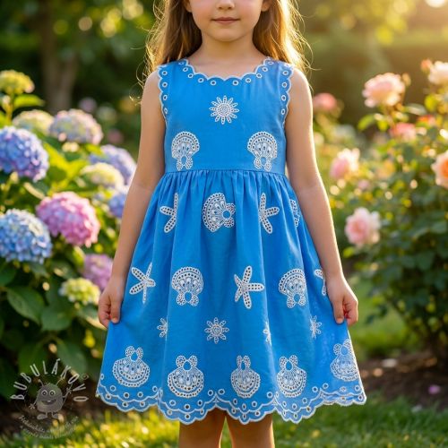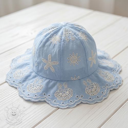 Bavlněná látka EMBROIDERY Sea ornaments light blue