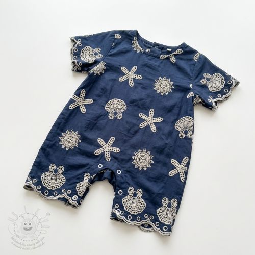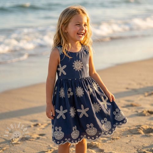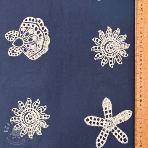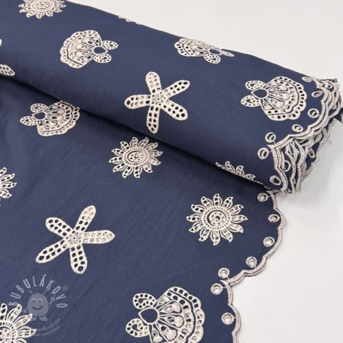 Bavlněná látka EMBROIDERY Sea ornaments navy