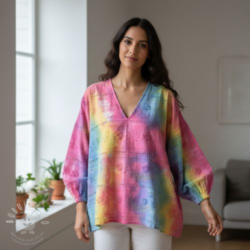 Bavlněná látka EMBROIDERY Tie dye Della design A