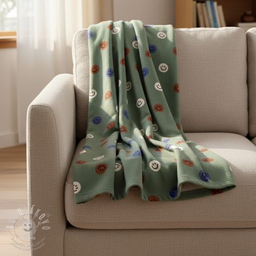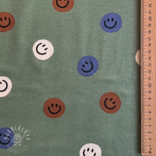 Bavlněná látka FLANNEL Happy faces off white lilac