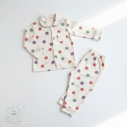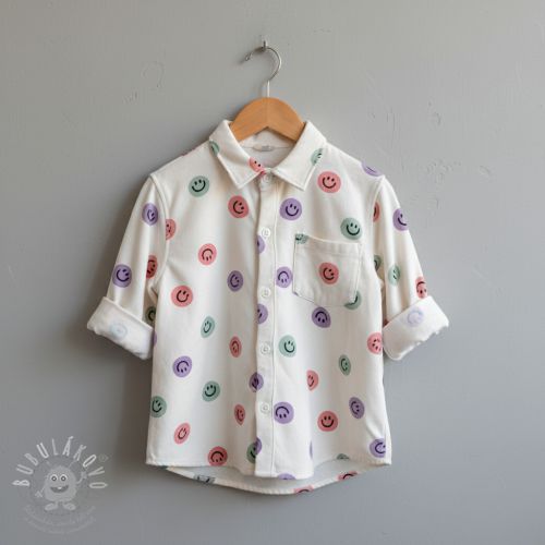Bavlněná látka FLANNEL Happy faces off white lilac