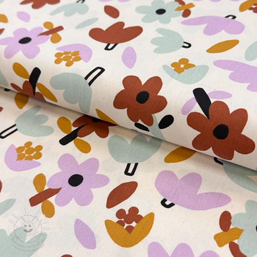 Bavlněná látka Flowers natural/lavender by JENNIFER BOURON ORGANIC