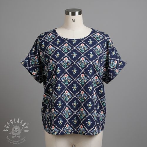 Bavlněná látka Flowers Tara navy design A digital print