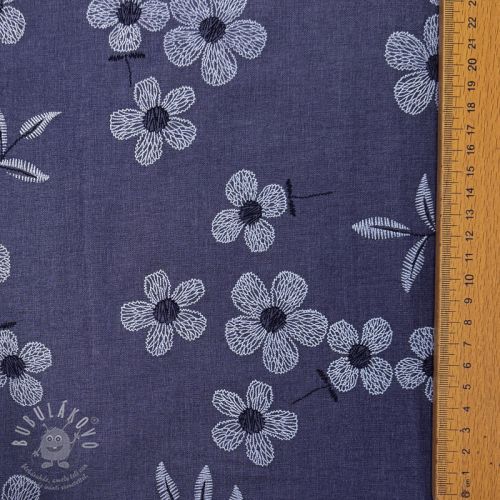 Bavlněná látka JEANS Chambre LUXURY JACQUARD Flowers dark blue