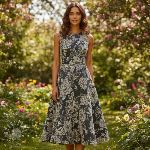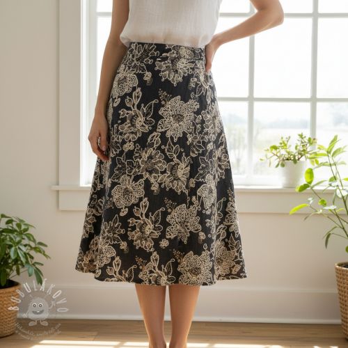 Bavlněná látka JEANS EMBROIDERY Bouquet black