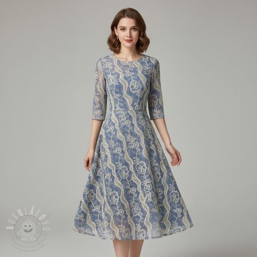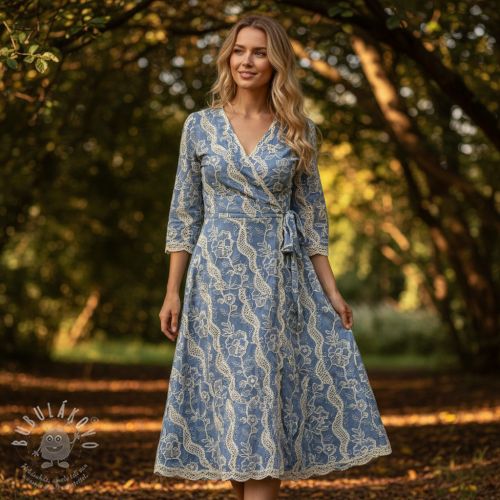Bavlněná látka JEANS EMBROIDERY Flora design B