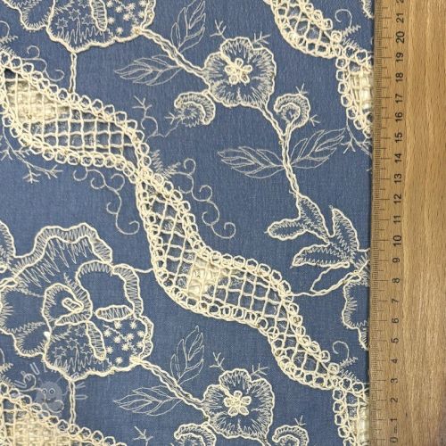 Bavlněná látka JEANS EMBROIDERY Flora design A