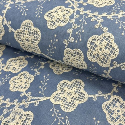 Bavlněná látka JEANS EMBROIDERY Flora design E