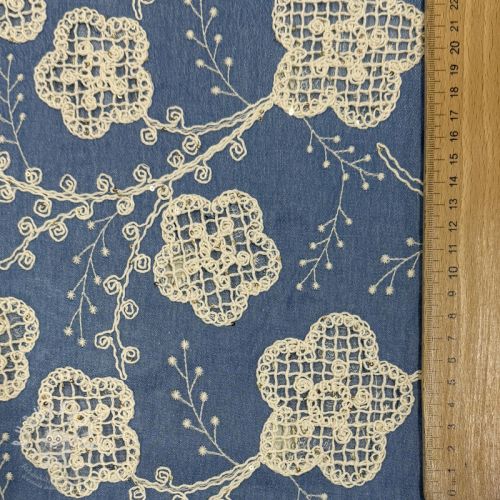 Bavlněná látka JEANS EMBROIDERY Flora design A