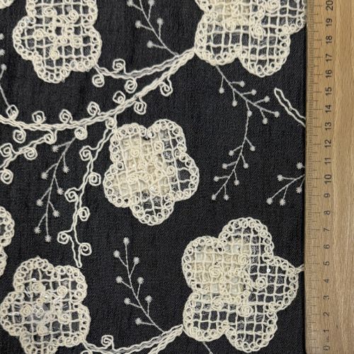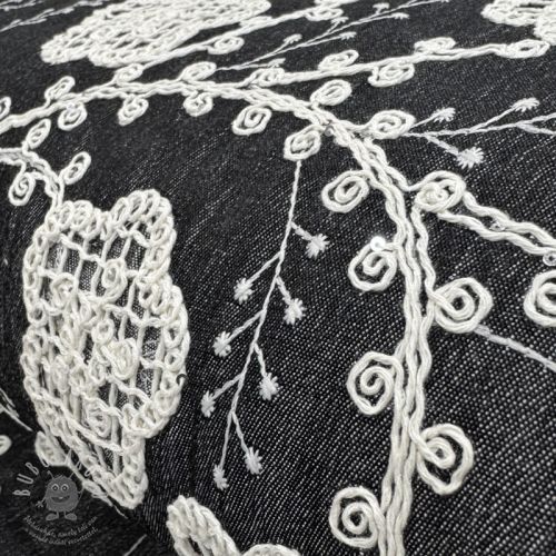 Bavlněná látka JEANS EMBROIDERY Flora design D