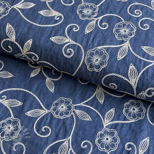 Bavlněná látka JEANS EMBROIDERY Flowers