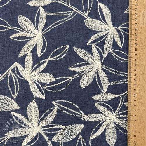 Bavlněná látka VOILE EMBROIDERY Flowers navy