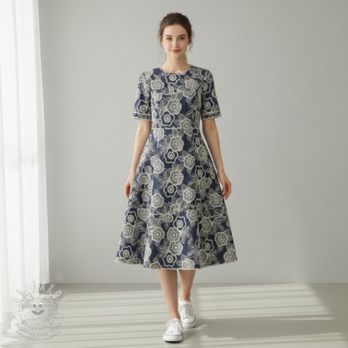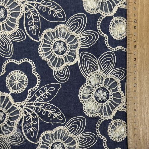 Bavlněná látka JEANS EMBROIDERY Niva design A