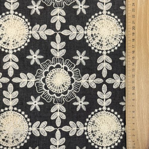 Bavlněná látka JEANS EMBROIDERY Niva design A