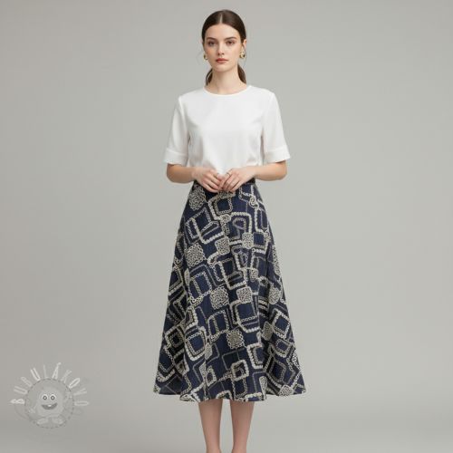 Bavlněná látka JEANS EMBROIDERY Square dark blue