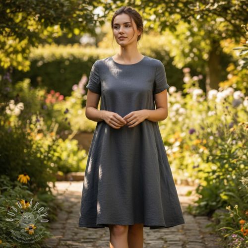 Bavlněná látka se lnem JACQUARD Peony flowers