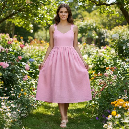 Bavlněná látka se lnem JACQUARD Peony flowers