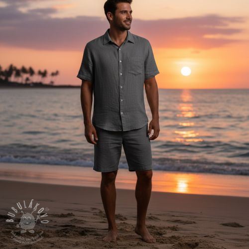 Bavlněná látka se lnem JACQUARD Peony flowers