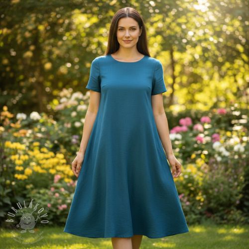 Bavlněná látka se lnem JACQUARD Peony flowers