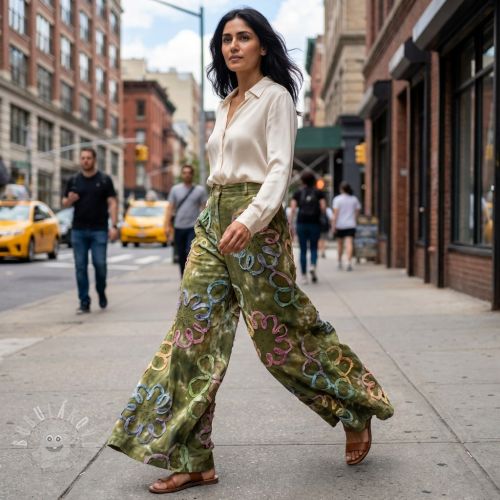 Bavlněná látka TIE DYE EMBROIDERY Elise tape design E