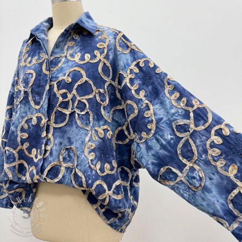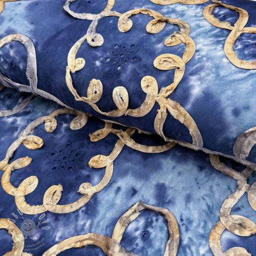 Bavlněná látka TIE DYE EMBROIDERY Elise tape design E