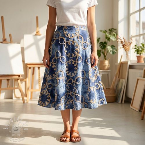 Bavlněná látka TIE DYE EMBROIDERY Elise tape design D