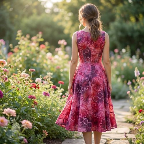 Bavlněná látka TIE DYE EMBROIDERY Elise tape design D