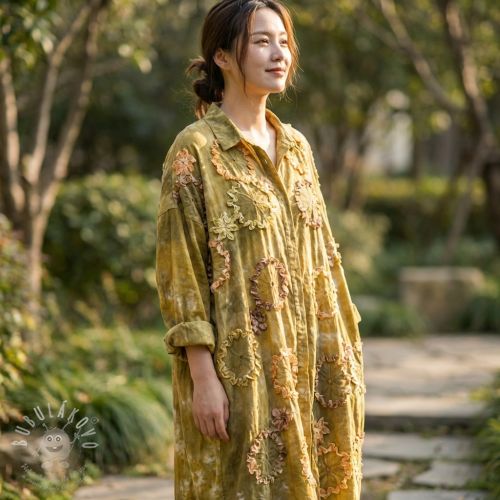 Bavlněná látka TIE DYE EMBROIDERY Eva tape design E