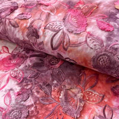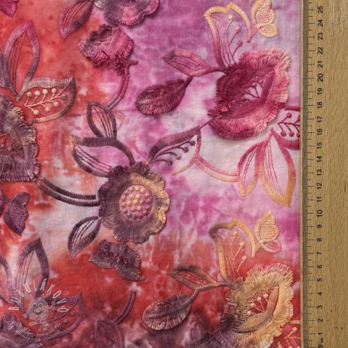 Bavlněná látka TIE DYE EMBROIDERY Flora design A