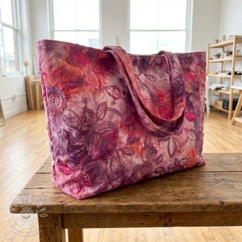 Bavlněná látka TIE DYE EMBROIDERY Flora design D