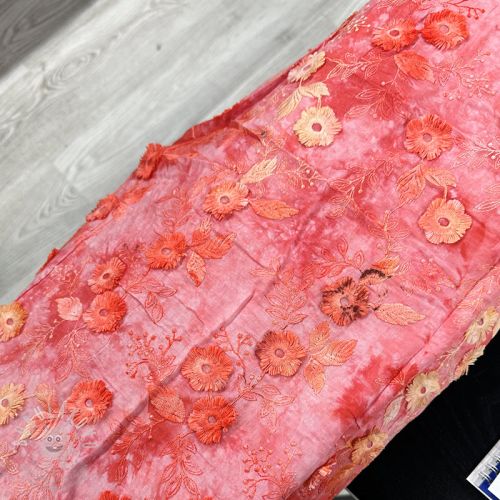 Bavlněná látka TIE DYE EMBROIDERY Poppy design K II.třída