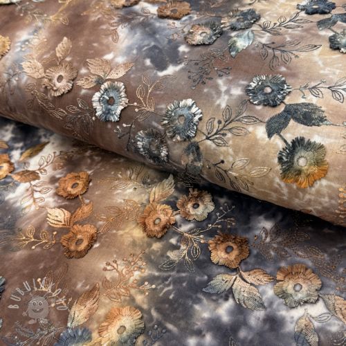 Bavlněná látka TIE DYE EMBROIDERY Poppy design J