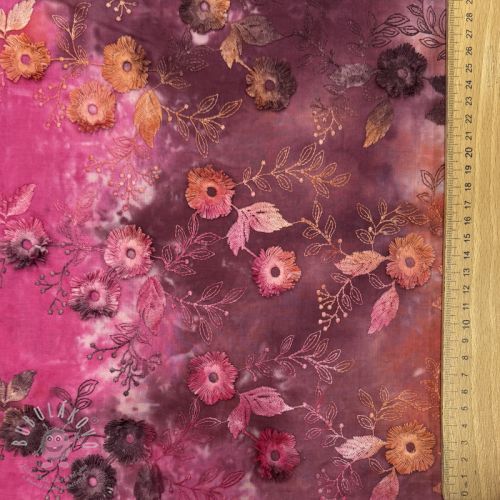 Bavlněná látka TIE DYE EMBROIDERY Poppy design Q