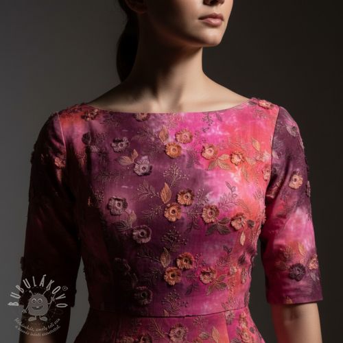 Bavlněná látka TIE DYE EMBROIDERY Poppy design J