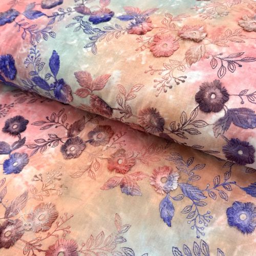 Bavlněná látka TIE DYE EMBROIDERY Poppy design Q