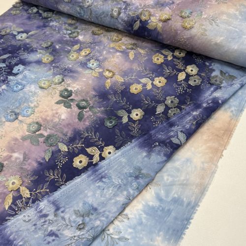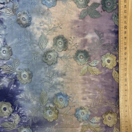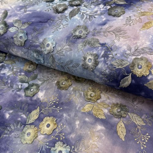 Bavlněná látka TIE DYE EMBROIDERY Poppy design Q