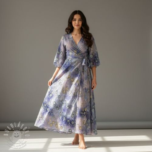 Bavlněná látka TIE DYE EMBROIDERY Poppy design J