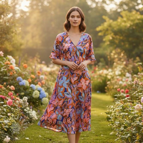 Bavlněná látka VISCOSE Flowers offwhite digital print