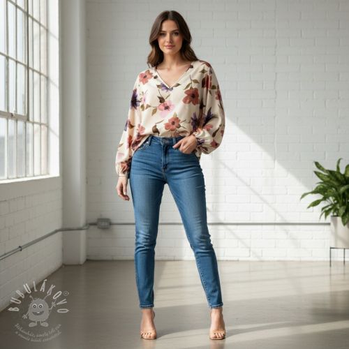 Bavlněná látka VISCOSE Flowers offwhite digital print