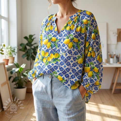 Bavlněná látka VISCOSE Flowers offwhite digital print