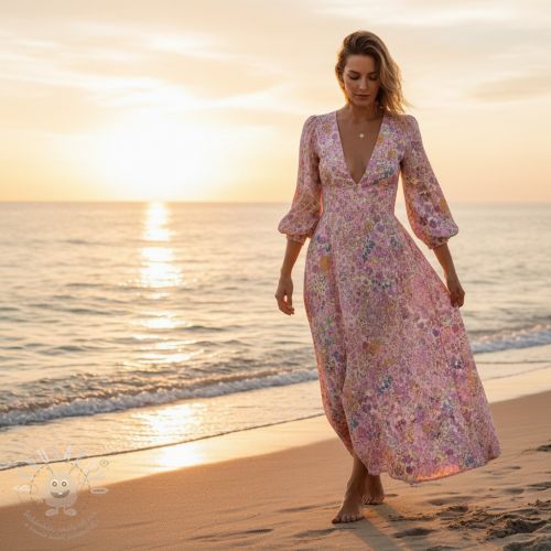 Bavlněná látka VOILE Small hayppy flowers digital print