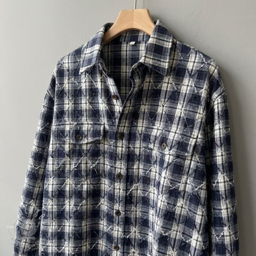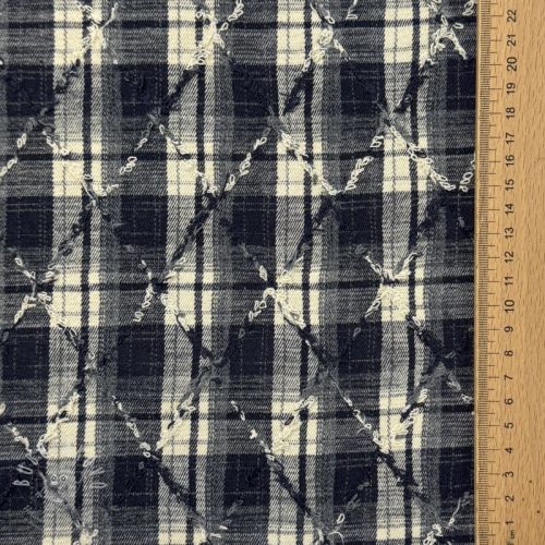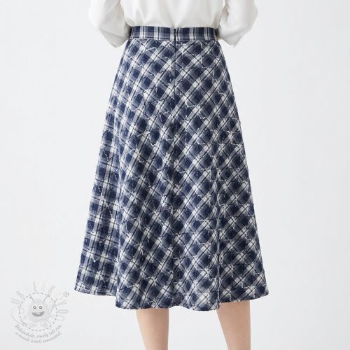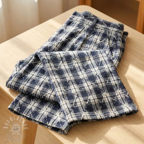 Bavlněná látka YARN DYED BRUSHED Check EMBROIDERY navy