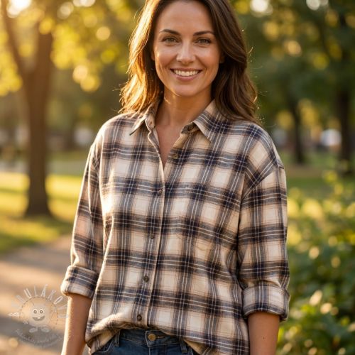 Bavlněná látka YARN DYED BRUSHED Check Tim beige